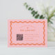 These wedding rsvp cards feature a bold orange color paired with a light pink, creating a vibrant and playful aesthetic. The retro wave border adds a touch of nostalgia and adds a fun and unique element to the design. The cards come in multiple color options, giving you the flexibility to create a cohesive look for your special day. The additional stationery in this collection is designed to mix and match, allowing you to create a custom and coordinated look for your wedding.