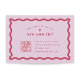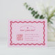 These wedding rsvp cards feature a bold viva magenta color paired with a light lilac purple, creating a vibrant and playful aesthetic. The retro wave border adds a touch of nostalgia and adds a fun and unique element to the design. The cards come in multiple color options, giving you the flexibility to create a cohesive look for your special day. The additional stationery in this collection is designed to mix and match, allowing you to create a custom and coordinated look for your wedding.