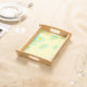 This is a well made, sturdy wooden tray with a flawless black finish and lovely map on the tray surface. It is both vintage & modern at the same time. Looks exactly like the photo; does not disappoint. So nice to find something of quality individually made and not the mass-produced 'shabby chic' merchandise seen in stores. I am so pleased to be able to give this to my college-age niece for her birthday. This can be used as a tray to hold jewelry or toiletries, or hung on the wall as art. The map surface is sealed (it is slightly shiny) so would be moisture resistant. It is well worth the asking price but I was able to apply a sale code as well. Very happy with my purchase. Map is crisp & clear and sealed with a water-resitant finish.