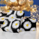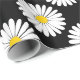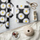 Bright and cheerful spring flower pattern wrapping paper with a daisy style graphic flower pattern in black, white, and yellow that adds a touch of nature to your gift giving.