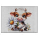A Cute Baby Calf With A Daisy Flower Glass Cutting Board For Your Kitchen