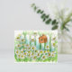 A cheerful postcard featuring a garden of Shasta daisies in spring with a white picket fence and little birdhouse.
