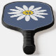 Brightly colored pickleball paddle features white daisy on slate blue background. Center of daisy is yellow and features an initial. A perfect gift for the women in your life who love pickelball. This is a great gift for your weekly pickleball group members or your bridesmaids. Delete the initial in the "Personalize This Template" section if you'd like the daisy with no initial. Be sure to personalize it with the correct initial prior to checkout. Available in blue, orange and lime green.