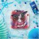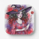 This paper plate features a whimsical witch wearing red pink daisies watercolor print.