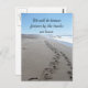 The message on this beautiful postcard is from the Dakota Indian Tribe. It says, "We will be known forever by the tracks we leave." The image on this postcard shows two sets of footprints tracking down a sandy shoreline. The blue ocean, white crashing waves, blue sky and sandy shoreline makes this postcard perfect for everyone.
