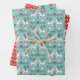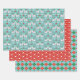 Wrapping paper sheet set with three matching Christmas patterns: Swedish Dala horses in white with greenery, flowers, and hearts; red and white florals; and green, red, blue, and white plaid.