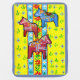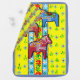 The images on this blanket include a drawing a painting and a photo of a wooden horse designed, carved and painted by Julia Persson Morrill