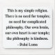 "This is my simple religion. There is no need for temples; no need for complicated philosophy. Our own brain, our own heart is our temple; the philosophy is kindness." - Dalai Lama