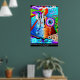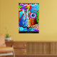 Fun bright artwork that really captures the mood I’m going for! Pop art with cyberpunk energy. A little sweet but also spicy. This art is the perfect size and vibe for our art gallery wall. The printing looks great, high quality with vibrant colors! I went with the semi-gloss finish, which adds a little extra shine and thickness to the print making it excellent for high-traffic areas like the staircase wall.
