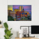 The grand old City Hall building resembles an old castle and sits across the street from the infamous school book depository building in Dallas, Texas where they light up magnificently in a glorious sunset by photographer Buck Cash.