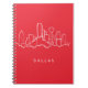 This design features a hand drawn sketch of the Dallas skyline on burgundy.