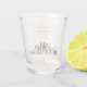 Modern Dallas skyline shot glass favor gift with "cheers" script. The design showcases a stunning sketch with the ability to customize your names and exact location. Enter the Zazzle design tool for additional customizations.