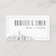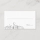 A set of unique wedding escort cards for a marriage taking place in the beautiful city of Dallas, Texas. They feature a stylized skyline of the city on one side, with a spot for the person's name to be written in. On the reverse side is a place for the wedding couple's names and wedding date with the skyline also presented in the bottom corner.