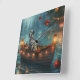 Set sail into the magic of the holiday season with this beautifully detailed illustration, showcasing a proud dog sitting in a festively decorated boat, gliding across a serene Christmas lake. The twinkling lights from nearby pine trees reflect off the water, casting a warm, festive glow that enhances the cozy ambiance. Ornaments dangle from the boat's sides, while glowing lanterns light the way, creating a scene that captures the true essence of Christmas warmth and joy. This nostalgic artwork brings a touch of holiday magic to any space, perfect for those who cherish the spirit of the season.