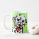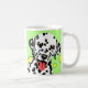 Colorful dog art featuring white Dalmatian with black spots against a light green background and yellow circles