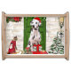 Dalmatian Dog sitting outside decorated home with Christmas wreath, Christmas tree is a perfect Christmas gift idea for dog lovers.