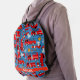 Dalmatian Dog Firetruck Firefighters Gray Personalized Drawstring Bag. Adorable animal rescuer pattern for kids. Gray, black, white, red dalmatian dogs and firetruck design. www.SamAnnDesigns.com
