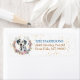 The left side of these return address labels feature an image of a spring flower wreath in colors of soft pink, blue, gold, green and cream. At the center is a beautiful watercolor portrait of a Dalmatian dog. Tiny gold confetti gives a subtle sparkle to the background. Your custom text is in blue and brown gold at the right.