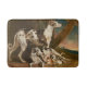 This design features a painting by the English artist James Ward (1769–1859), who specialized in depicting animals. It shows a family of Dalmatian dogs: there is a male dog standing upright beside a female dog lying on the ground with two young pups suckling from her. All of the dogs have the white coats with black or brown spots that is typical of the Dalmatian dog breed. This breed of dog is thought to have come from present-day Croatia and its historical region of Dalmatia, and it was used originally as a hunting dog, but it is now celebrated for its gentle temperament and beauty.