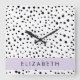 Dalmatian Dots, Spots, Black and White, Your Name Square Wall Clock