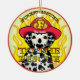 A Dalmatian Firefighter ornament, personalized firefighters ornaments, t-shirt, Fire fighter apparel, Firetrucks, Firefighter gifts by ArtMuvz Illustration. TO PERSONALIZE add your name or add text instead. Customize this firefighter ornament to make it uniquely yours or to give as a personalized gift.The bold design features a firefighter DOG a symbol of the fire service. It's a great way to start a conversation about fire safety and prevention. Perfect for firefighters, their families and friends, or anyone who wants to show their appreciation for these brave heroes