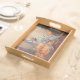 This is a well made, sturdy wooden tray with a flawless black finish and lovely map on the tray surface. It is both vintage & modern at the same time. Looks exactly like the photo; does not disappoint. So nice to find something of quality individually made and not the mass-produced 'shabby chic' merchandise seen in stores. I am so pleased to be able to give this to my college-age niece for her birthday. This can be used as a tray to hold jewelry or toiletries, or hung on the wall as art. The map surface is sealed (it is slightly shiny) so would be moisture resistant. It is well worth the asking price but I was able to apply a sale code as well. Very happy with my purchase. Map is crisp & clear and sealed with a water-resitant finish.