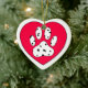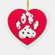 Dalmatian Paw Print In Red Heart Ceramic Ornament