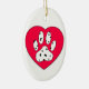 Dalmatian Paw Print In Red Heart Ceramic Ornament
