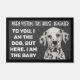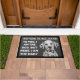 Custom dog doormat with a funny quote. "To you, I am the dog, but here, I am the baby." It has a non-slip rubber that won't crack or buckle, resists fading, mold, and mildew and can be easily cleaned with a hose. Be creative - click on CUSTOMIZE to add/remove/change text, change the picture, resize the picture, change colors, background or anything else the customization tool will allow!