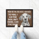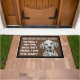 Custom dog doormat with a funny quote. "To you, I am the dog, but here, I am the baby." It has a non-slip rubber that won't crack or buckle, resists fading, mold, and mildew and can be easily cleaned with a hose. Be creative - click on CUSTOMIZE to add/remove/change text, change the picture, resize the picture, change colors, background or anything else the customization tool will allow!