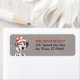 The left side of these Holiday return address labels features a beautiful Dalmatian Dog wearing a red and white Santa Claus hat. The image is placed on a gray background, and tiny gold confetti gives a bit of sparkle. Your custom text is in red and black at the right.