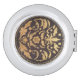 Beautiful compact mirror that represents a totally original damascene artwork typical from Toledo, Spain. Damascening is an ancient craft that involves decorating steel objects with gold and silver designs to create creations of great beauty and delicate craftsmanship. The contrast between black and the luster of precious metals creates striking and luxurious pieces. This compact mirror design is a tribute from the designer to that gorgeous artwork that is still produced in Toledo.