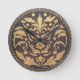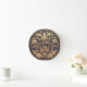 Beautiful wall clock that represents a totally original damascene artwork typical from Toledo, Spain. Damascening is an ancient craft that involves decorating steel objects with gold and silver designs to create creations of great beauty and delicate craftsmanship. The contrast between black and the luster of precious metals creates striking and luxurious pieces. This wall clock design is a tribute from the designer to that gorgeous artwork that is still produced in Toledo.
