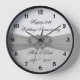 A Digitalbcon Images Design featuring a platinum siolver color and damask design theme with a variety of custom images, shapes, patterns, styles and fonts in this one-of-a-kind "Damask 25th Wedding Anniversary Design" Wall Clock. With this attractive and elegant design you'll have all your decorations, gift ideas and party favors all coordinated for the perfect Anniversary celebration.