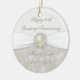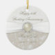 A Digitalbcon Images Design featuring a satin pearl color theme with a variety of custom images, shapes, patterns, styles and fonts in this one-of-a-kind "Damask Pearl Wedding Anniversary" Ornament. This elegant and attractive design makes the perfect Anniversary gift for the Anniversary couple or as a complete dinner set and comes complete with customizable text letter to suit your own special occasion.