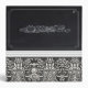A two inch black and white themed binder styling a damask pattern wallpaper, chair rail molding and elegant chalkboard frame featuring a chalk font saying "Secret Family Recipes". It's sure to be a hit in any kitchen.
