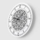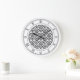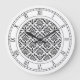 Clock face with an ornate baroque style damask pattern centre with black detail on a white background with a Roman numeral surround.