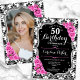 Damask Black Silver Pink Photo 50th Birthday Invitation