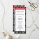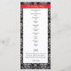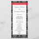 Damask wedding programs with red accent stripe and formal black and white damask pattern.