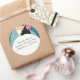 The sticker is made on wonderful paper and had no problem sticking to the bag that I purchased to put it on. I wanted to find a design that would be cute for the bride and groom and this one fit the bill as it has cute "bees" buzzing around and the wedding was taking place in a town called "Bee Cave". The packaging was great and protected the stickers. The website is easy to navigate and there are so many color choices. I had no problem finding a color that the bride was using on everything else selected. The design was adorable and there were many to choose from. You can make the figure as larger or smaller and you can place the photo and writting whereever you want to in the sticker. The printing is fabulous..better than expected.