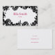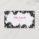Black and white business card suitable for any profession. design features damask pattern in black set against a background in white. All text is customizable. background color can be changed to whatever you wish.