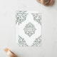 A handdrawn damask design note card in pale sage. From soft pastel hues to bold dyes, choose a shade that reflects your style with this original design from The Ink Imprint