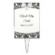Nothing says photo opportunity at a wedding reception more than the happy couple cutting their cake. Yes, the couple happily cramming a piece of cake loaded with frosting into each other’s mouths spells out photo opportunity, but shouldn't the cake be memorable before it is destroyed by the newlyweds? A wedding cake topper is the cherry on top of a magical day! Personalize by changing the text in the fields provided. Change font style, size and color to make it your own.