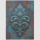 An ornate, weathered design featuring a stylized floral or fleur-de-lis shape in teal and turquoise tones, highlighted with copper and rust textures—evoking antique charm and rich decorative detail.