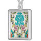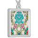 Damask Floral Patterns Plum Turquoise Silver Plated Necklace
