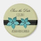 Elegant and sophisticated Damask Flowers Border Save the Date Magnet in turquoise. This fully customizable magnet features damask embellished flowers and a chic striped border. This design is perfect for the bride wanting something classy and feminine! The background color may be changed to any color to match any wedding theme. The design element may also be adjusted and moved. Magnets make lovely wedding favors.