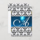 DAMASK GEM MONOGRAM blue rsvp gold Invitation