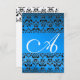 DAMASK GEM MONOGRAM blue rsvp gold Invitation