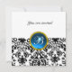 DAMASK GEM STONE MONOGRAM sapphire blue white Invitation