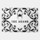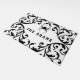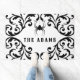 This door mat design features a spider dangling from a black damask pattern on a white background. In the center you can personalize with a name.